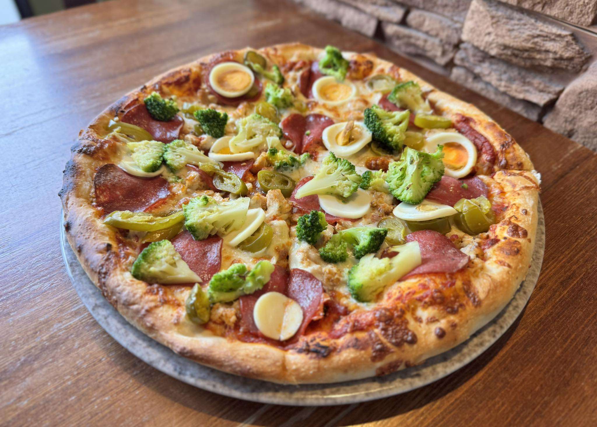 Három pizzát rendeltünk, Parasztos, Tanyasi és Négy sajtos, plusz három Coca Cola-t. A rendelés leadását követően, teljesen elfogadható várakozás után, kihozták a rendelésünk. Kijelenthető, hogy nagyon finom, vékony tésztájú pizzákat készítettek nekünk ! Nem megégetett szélű és aljú, finomra sütött pizzatésztára bőséges feltéteket kaptunk ! Azt kaptuk, ami az étlapon volt ! Csak ajánlani tudom ezt a helyet !